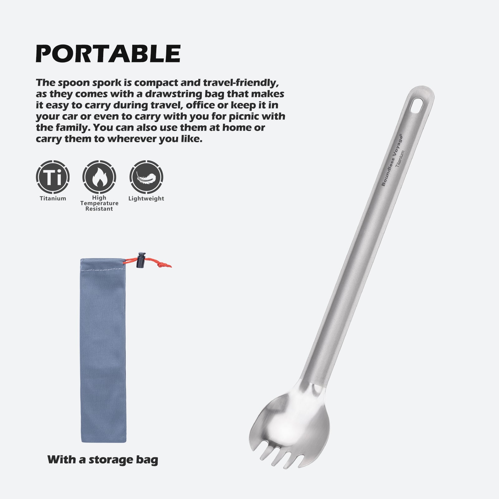 Boundless Voyage Titanium Long Handle Spork Ultralight Spoon & Fork Cutlery with Storage Pouch for Camping Travel & Home Use
