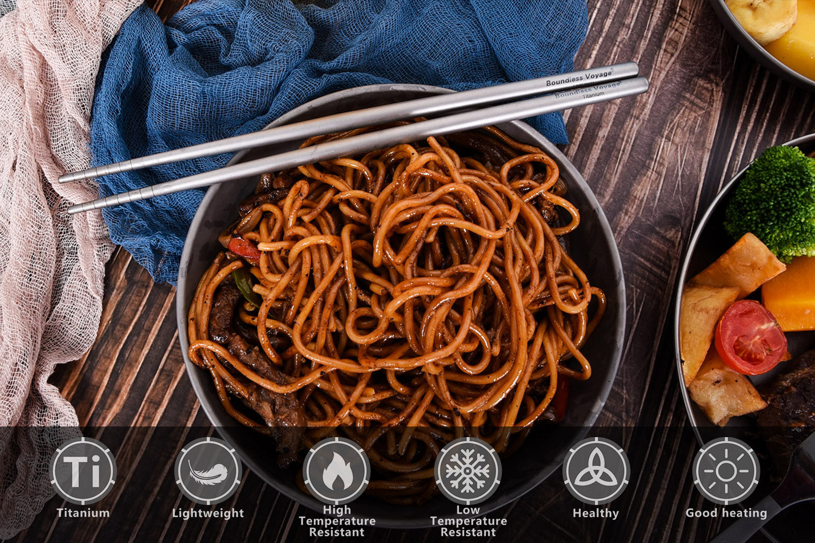 Boundless Voyage Titanium Round Chopsticks 23cm – Ultralight Reusable Eco-Friendly Cutlery for Home, Camping & Travel