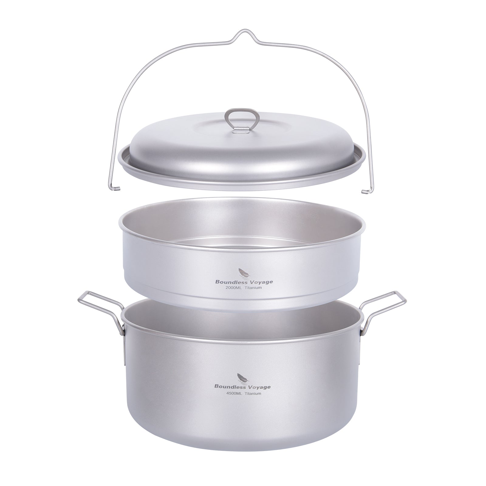 Boundless Voyage Titanium Steamer & Soup Pot Set – 4.5L + 2L Ultralight Camping Cookware for Outdoor Hiking, Picnic & Travel For 3-5 Person