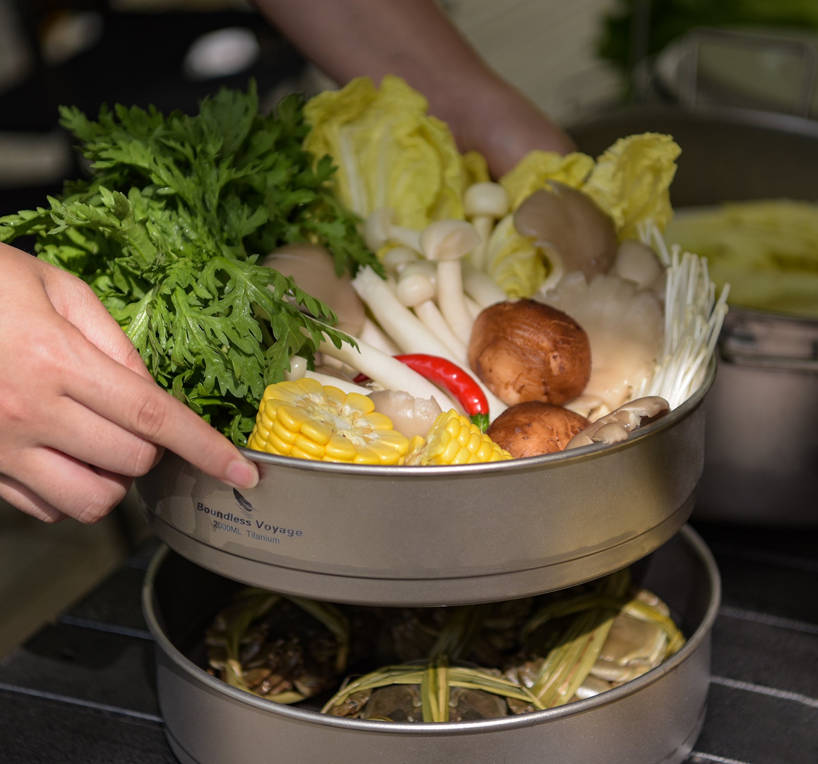 🏕 Boundless Voyage – Titanium Steamer & Soup Pot Set (4.5L + 2L)
