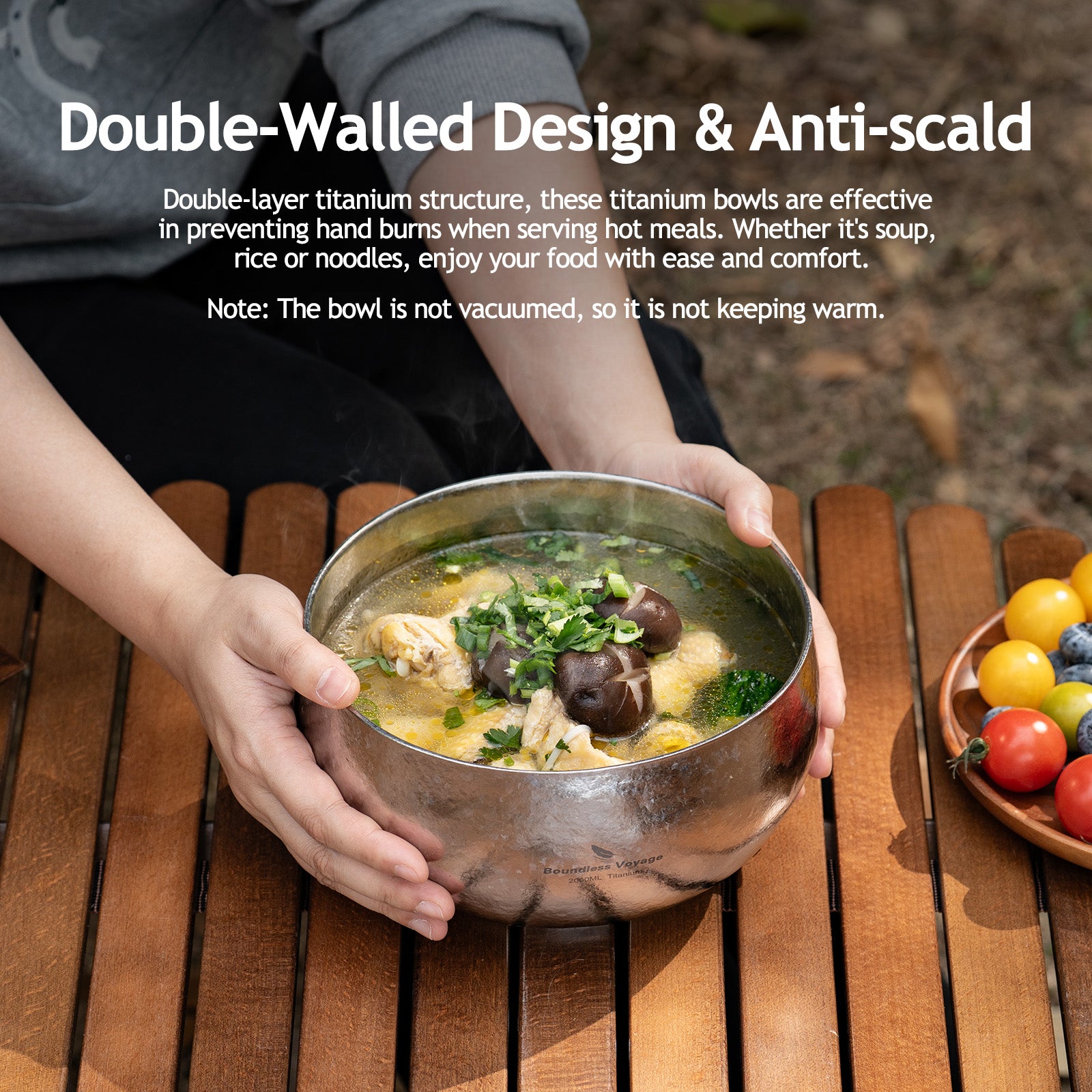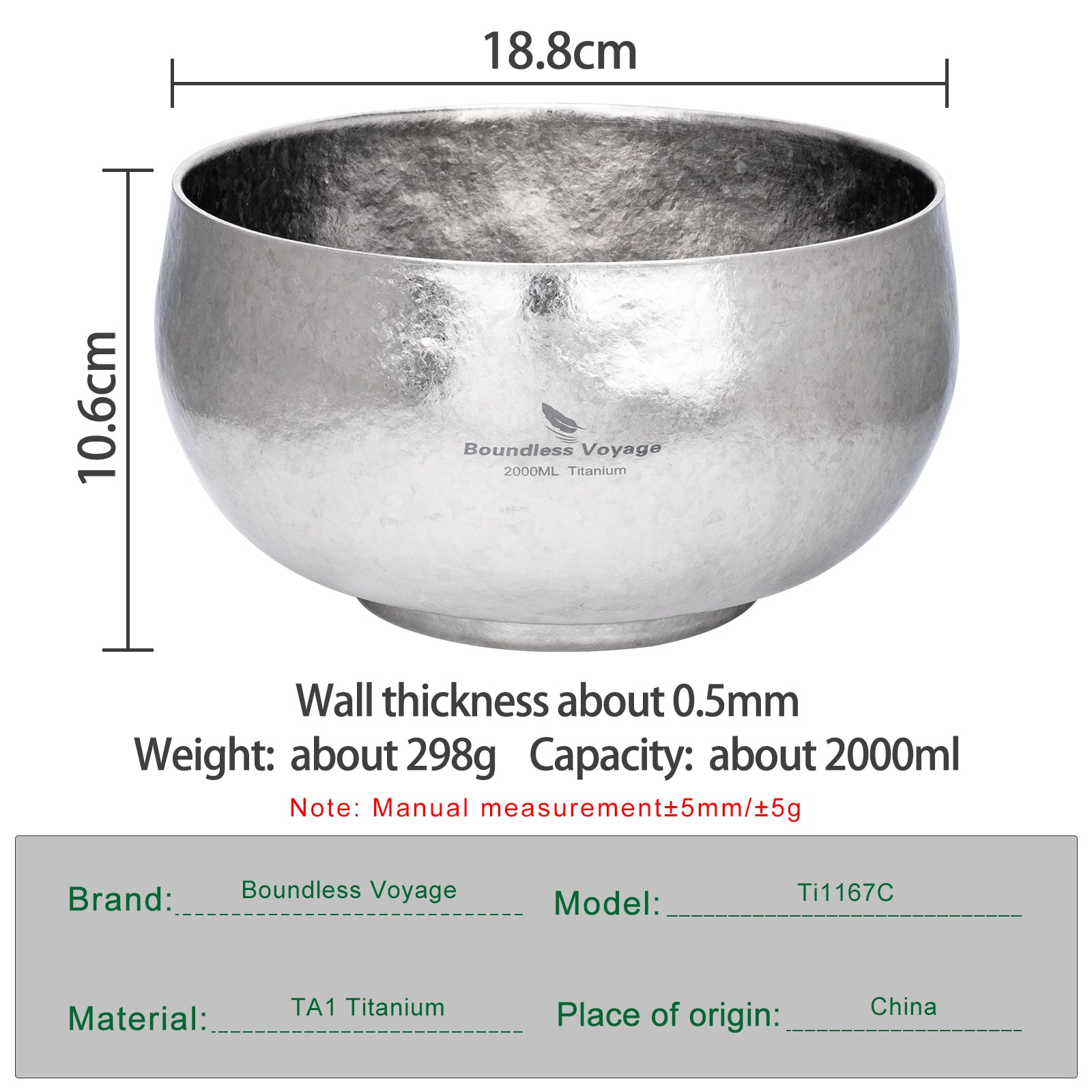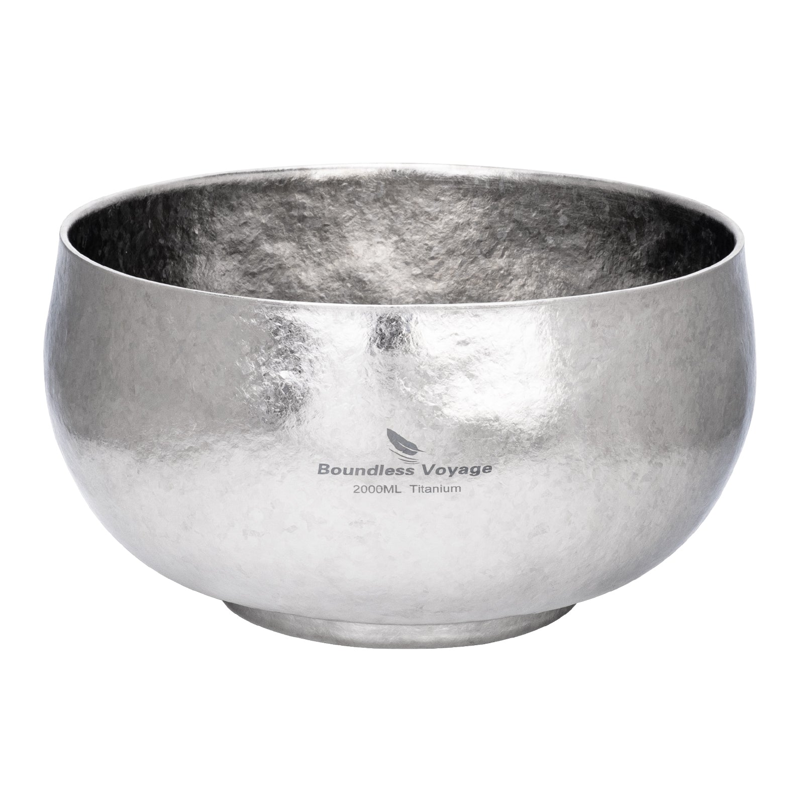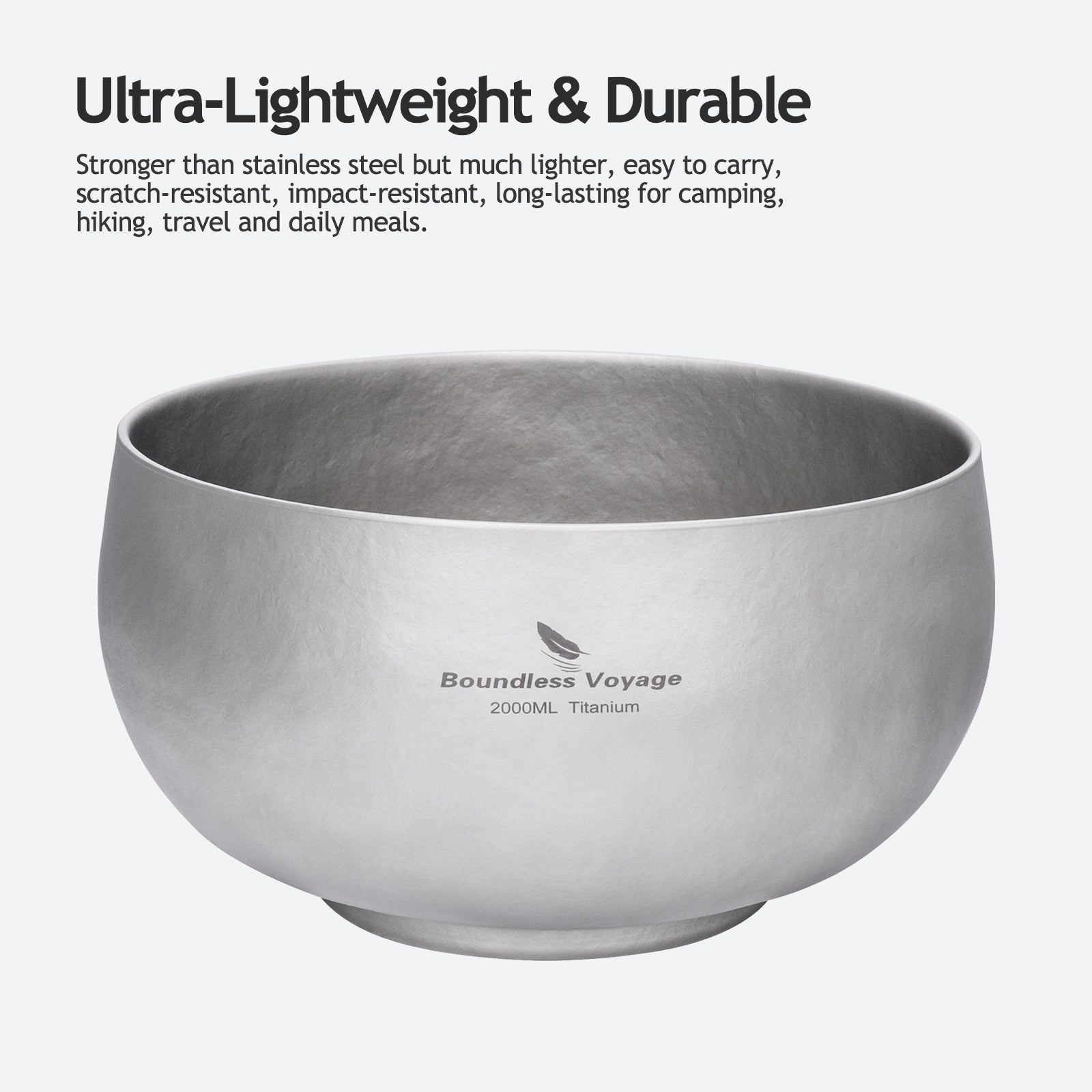Boundless Voyage 2000ml Double-Wall Titanium Bowl – Extra-Large Ultralight Camping Bowl | Insulated No-Burn Grip, Pure Titanium for Group Meals & Outdoor Cooking