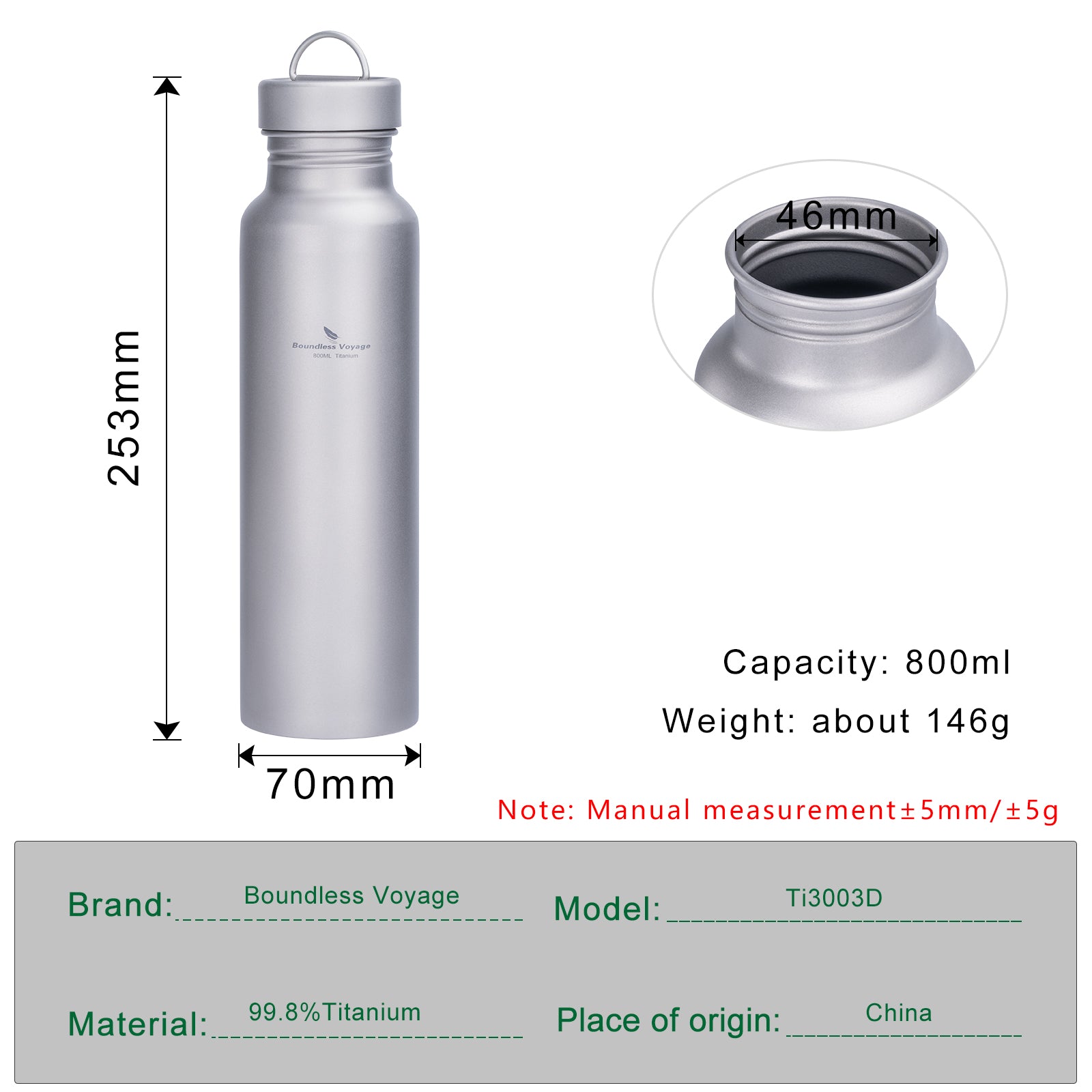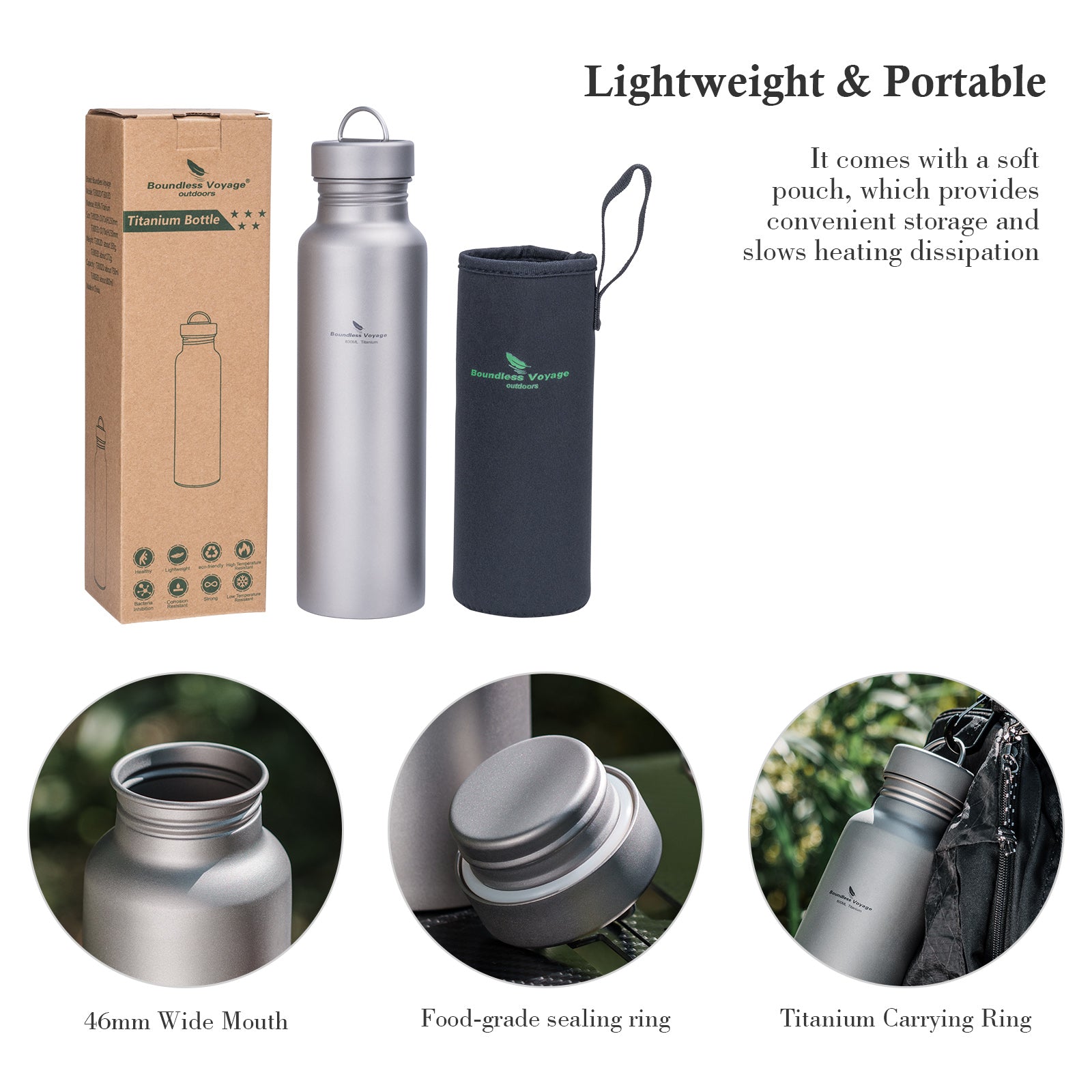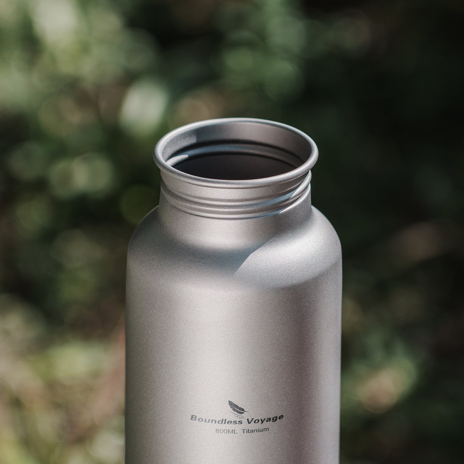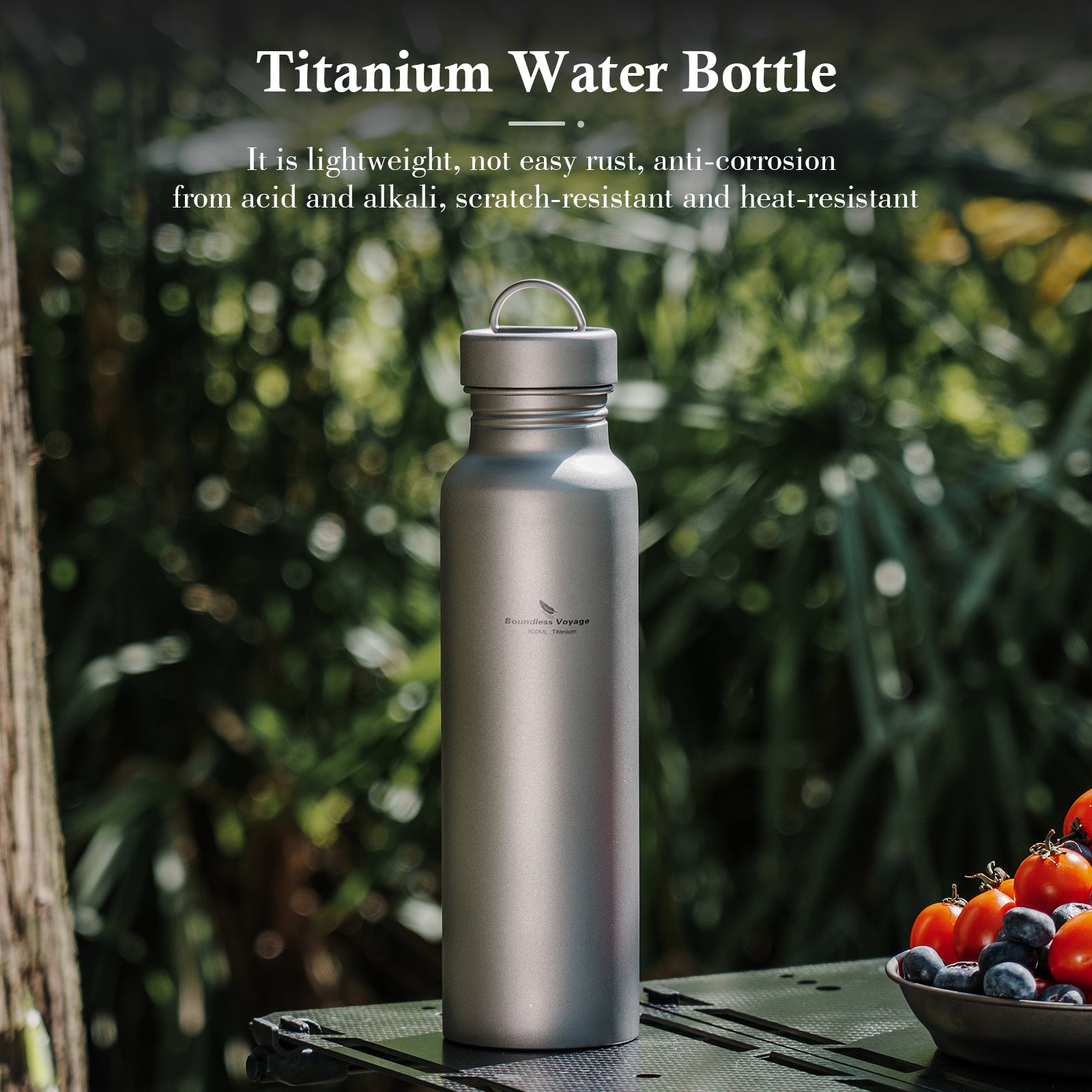 Boundless Voyage 800ml Pure Titanium Water Bottle with Titanium Lid | 27oz Ultralight Plastic-Free Sports Flask | Leakproof & Non-Toxic Metal Canteen for Cycling, Hiking & EDC