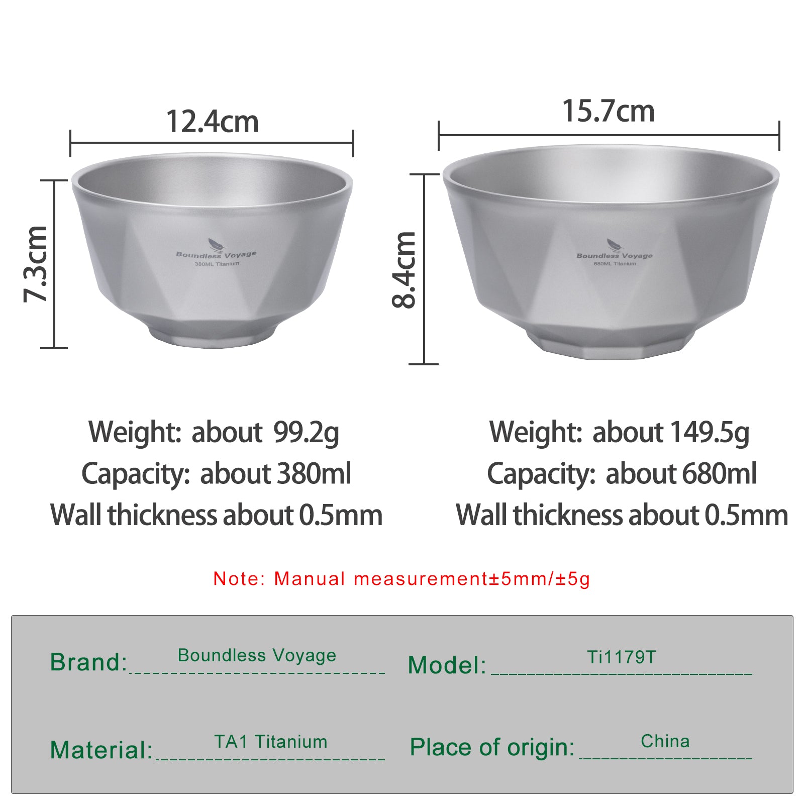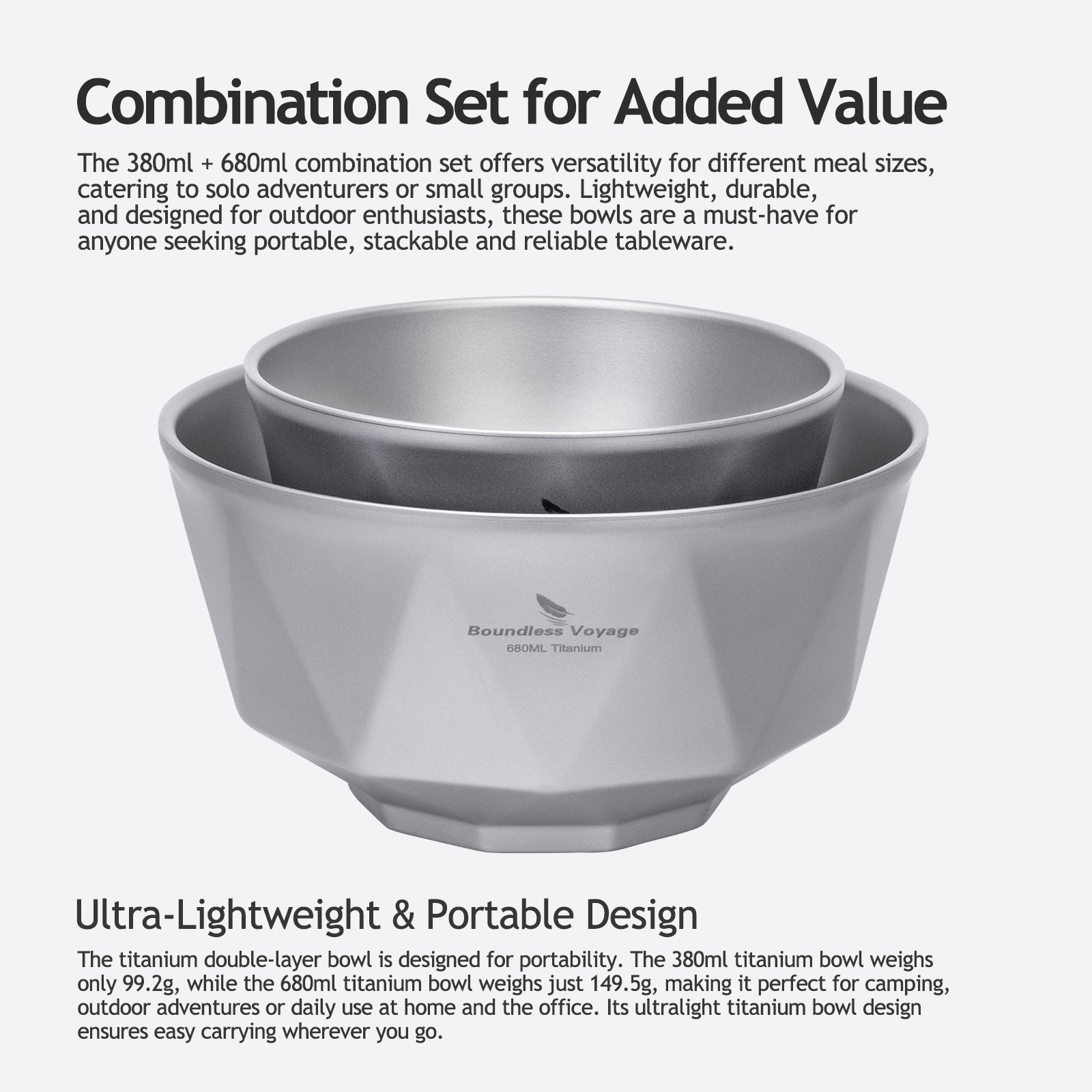 Boundless Voyage Double-Walled Titanium Bowl | 380ml & 680ml Ultralight Insulated Camping Bowl Set | Heat-Resistant Tableware