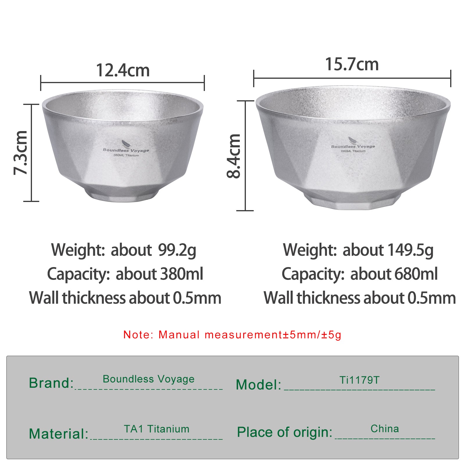 680ml: 15.7*15.7*8.4cm, weight about 149.5g, wall thickness: 0.5MM