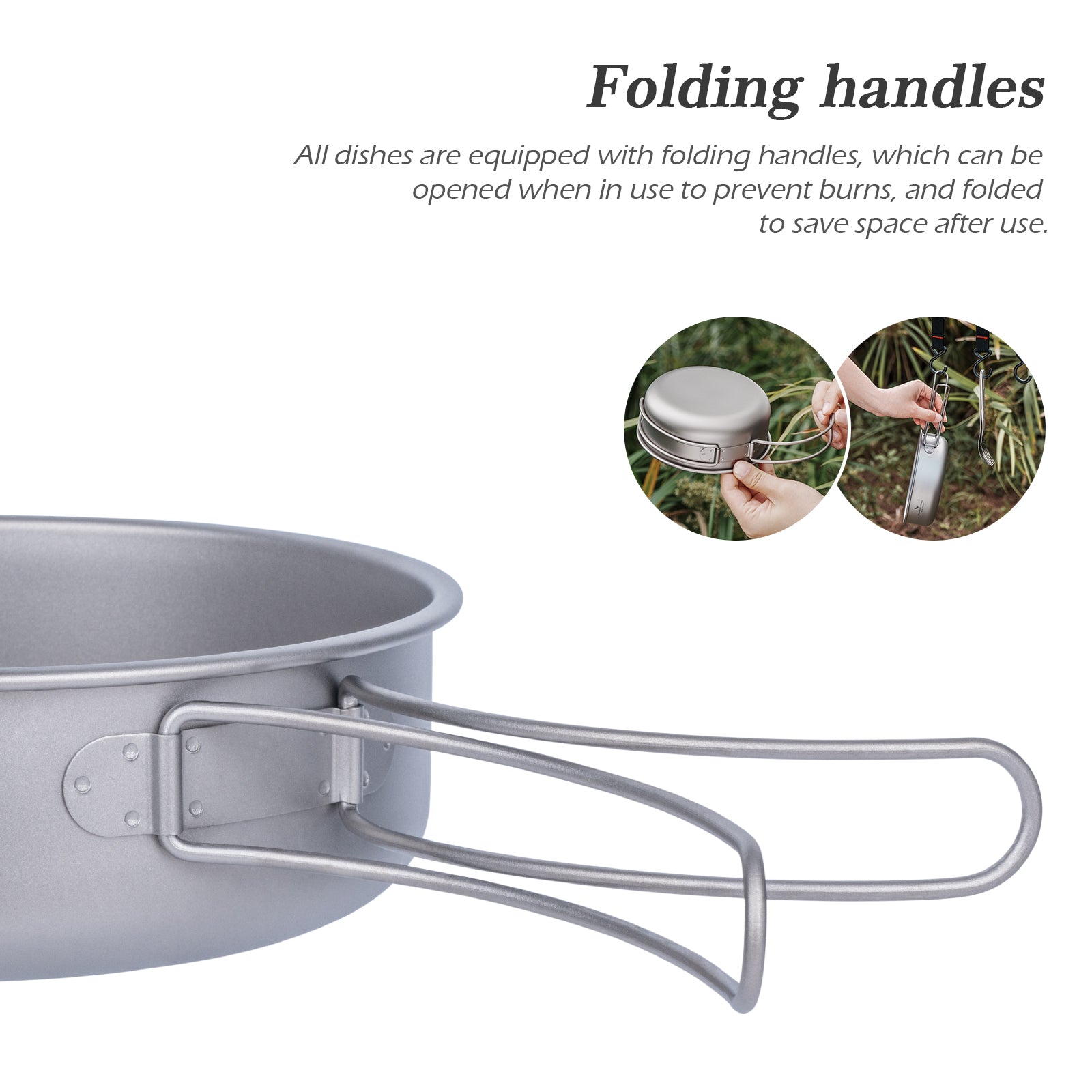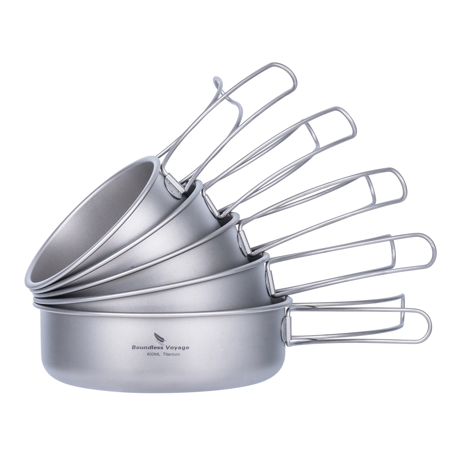 Boundless Voyage Titanium Bowls & Plates Set – 5-Piece Ultralight Folding-Handle Camping Tableware (350/500/600/700/800ml)