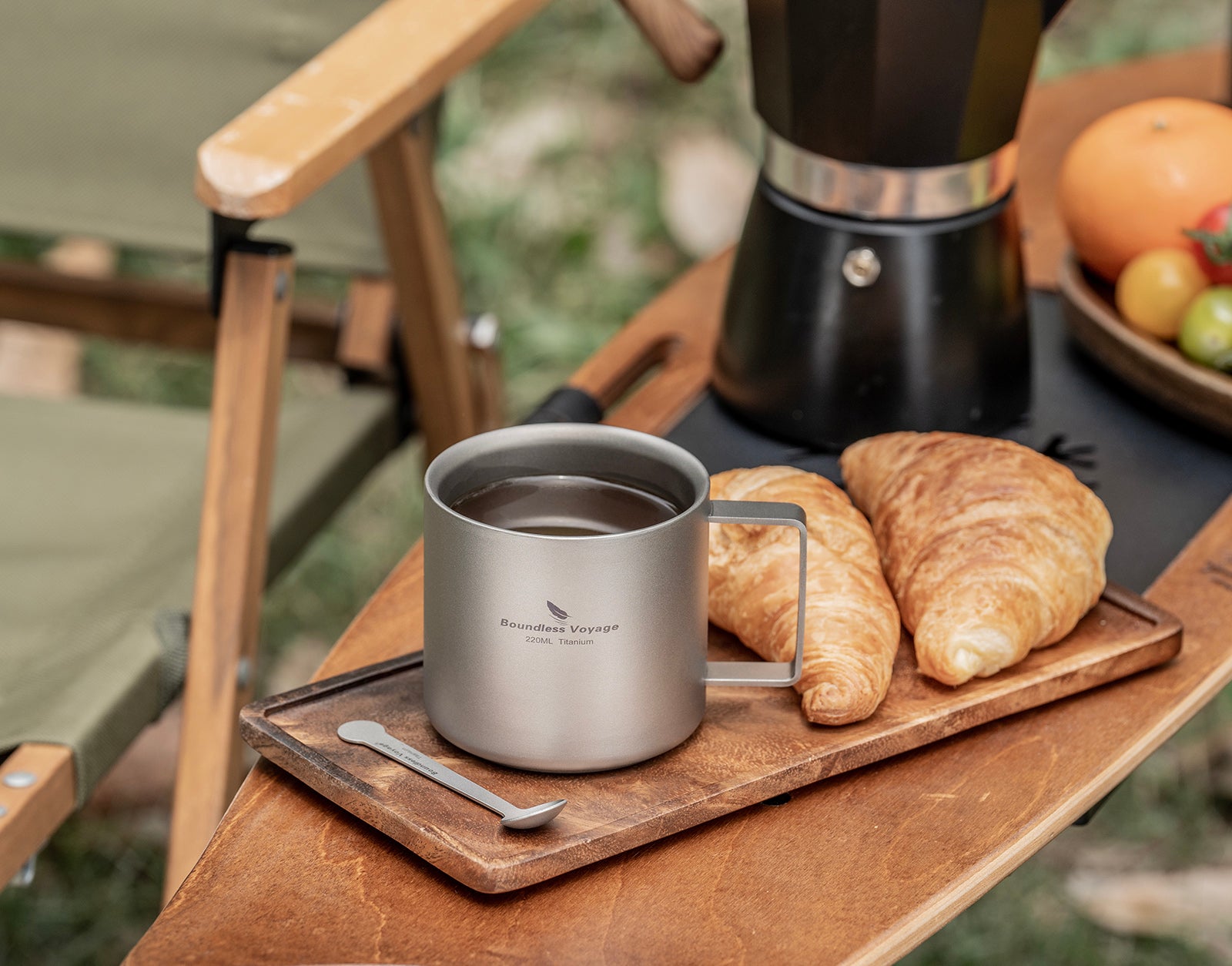 Boundless Voyage 220ml Double-Walled Titanium Cup | Ultralight Insulated Mini Coffee Mug | Anti-Scalding Tea Cup for Camping, Travel & Home