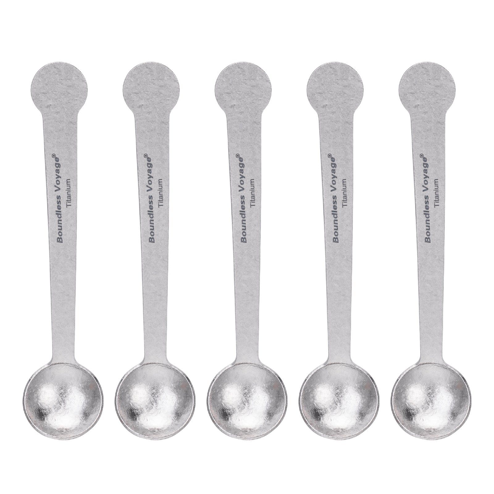 Enjoy precision scooping with the Boundless Voyage TA1 Titanium Mini Coffee Spoon. Made from ultralight and durable TA1 titanium, this spoon is perfect for coffee, tea, desserts, sugar, jam, and more. Its compact size makes it ideal for home use, parties, or travel.
