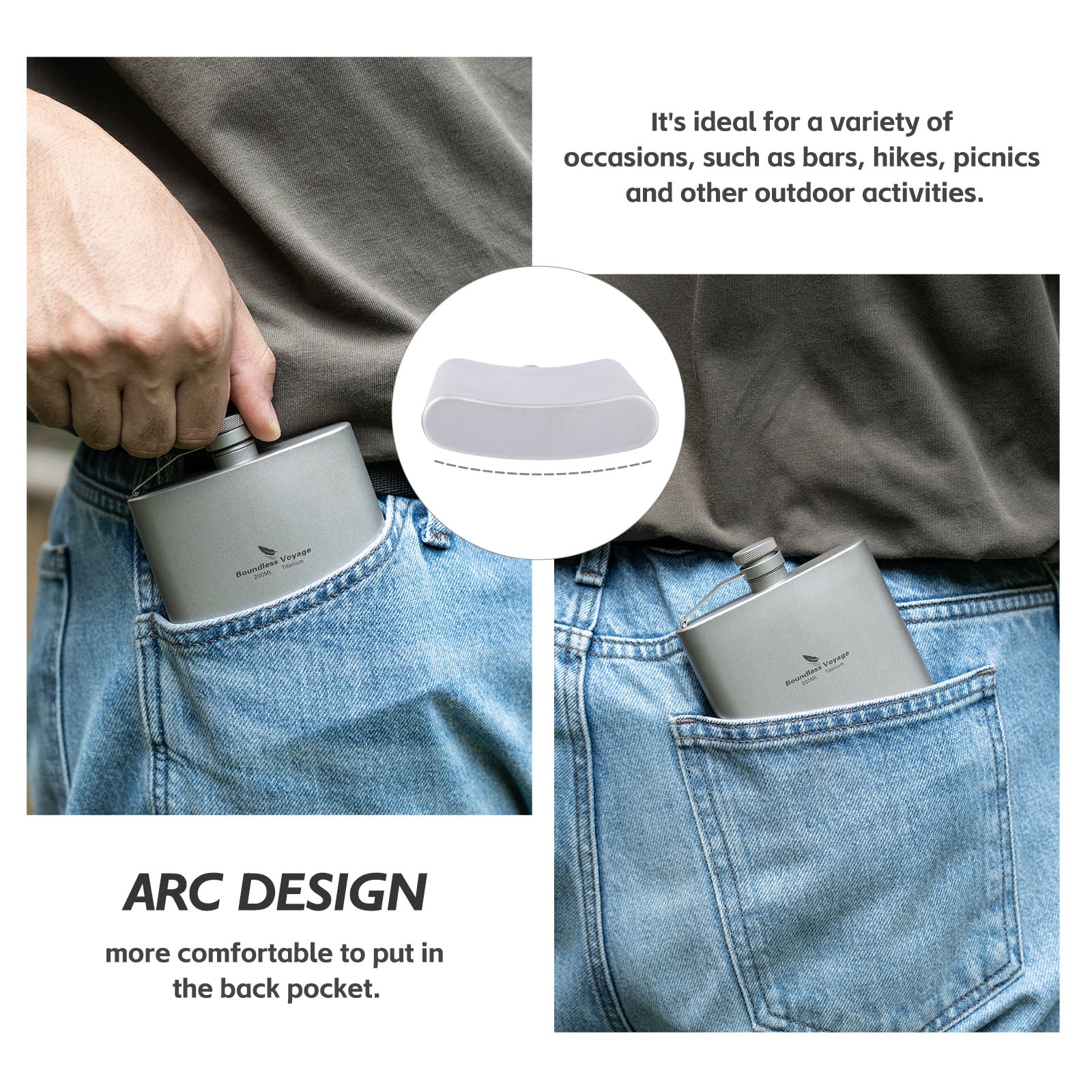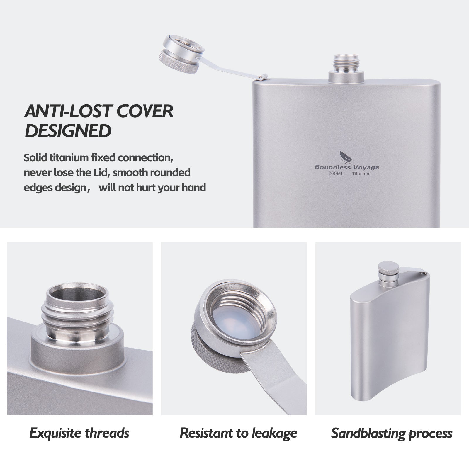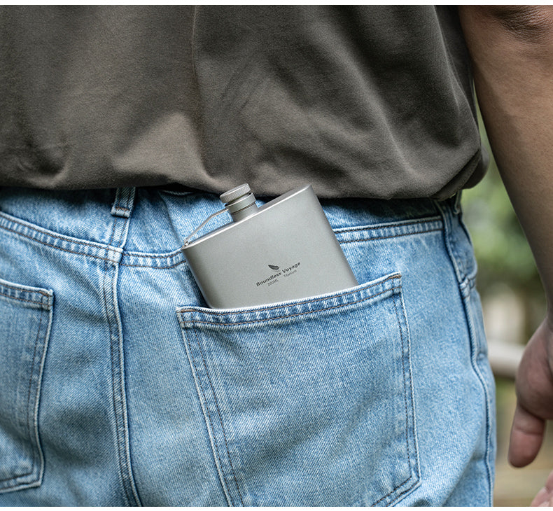 Boundless Voyage 7oz Titanium Flask – Ultralight 200ml Pocket Liquor Bottle, Pure TA1 Titanium, Leakproof Travel Hip Flask for Camping, Hiking & Outdoor Adventures