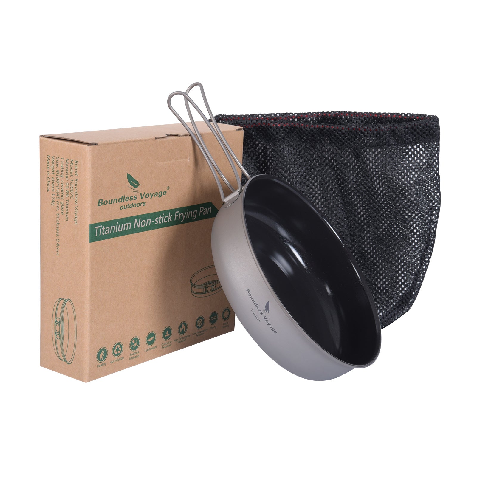 Boundless Voyage Titanium Non-stick Frying Pan with Ceramic Coating – Folding Handle | Ultralight Outdoor Camping, Picnic & Hiking Skillet | Durable, Portable & Eco-Friendly Tableware