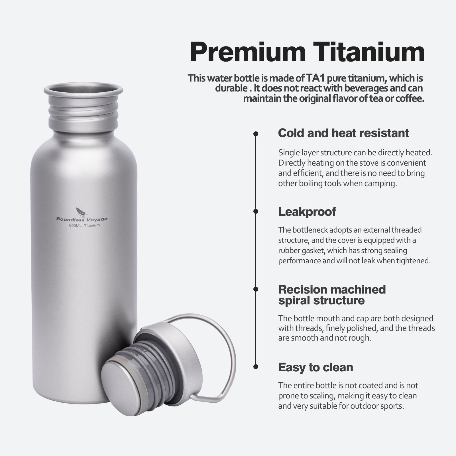Boundless Voyage 600ml Titanium Water Bottle with Lid – Eco-Friendly, Leak-Proof & Reusable | Wide Mouth for Camping, Hiking & Daily Use