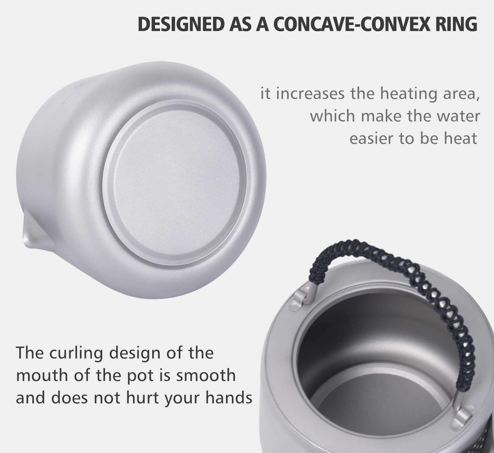 Material: TA1 Titanium (kettle and handle)