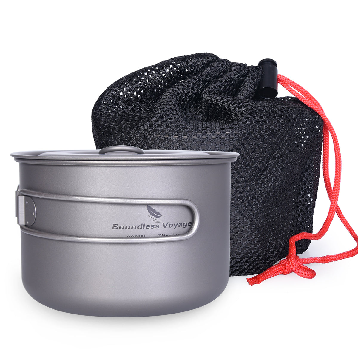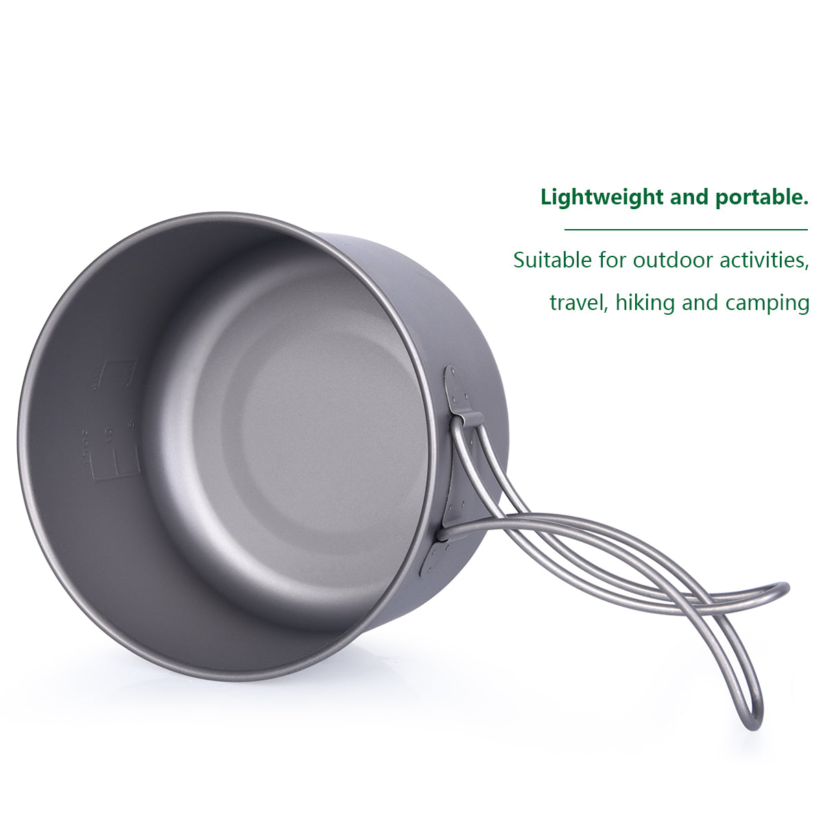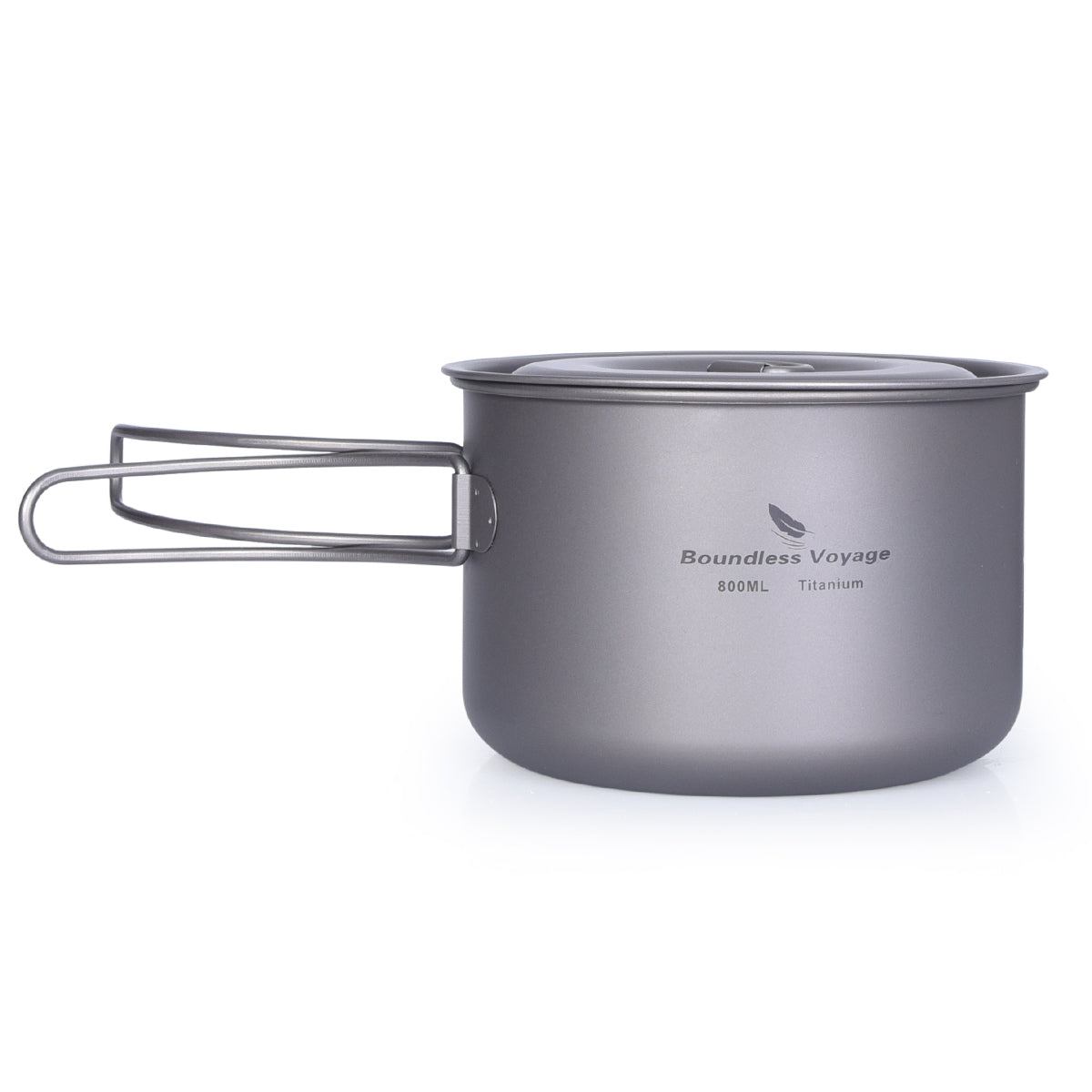 Boundless Voyage Outdoor Titanium Pot with Lid Folding Handle Camping Hiking Picnic Ultralight Tableware 800ml