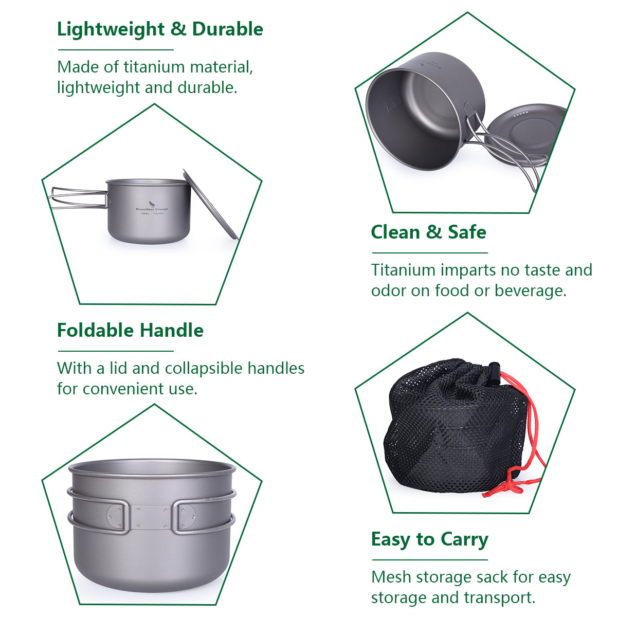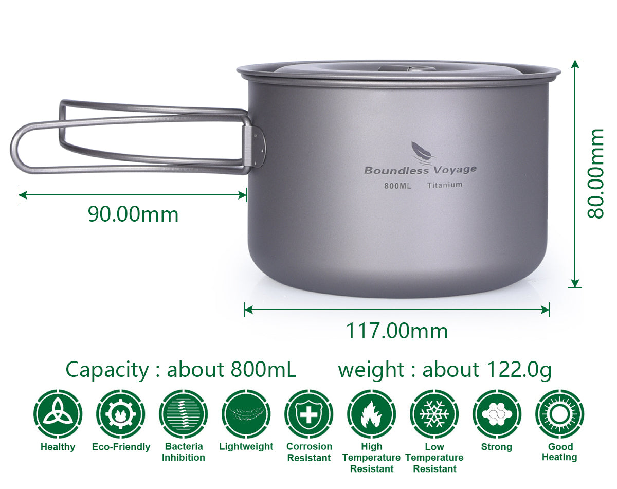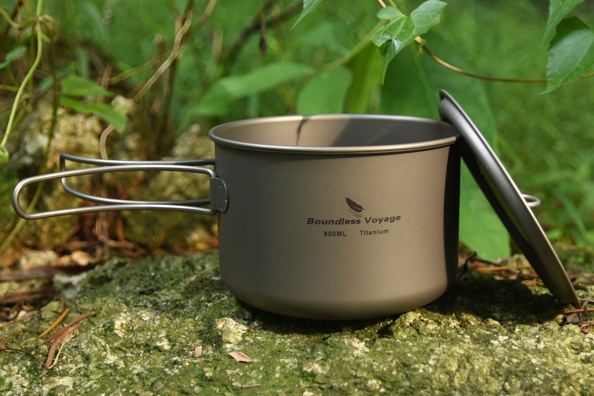 Boundless Voyage Outdoor Titanium Pot with Lid Folding Handle Camping Hiking Picnic Ultralight Tableware 800ml