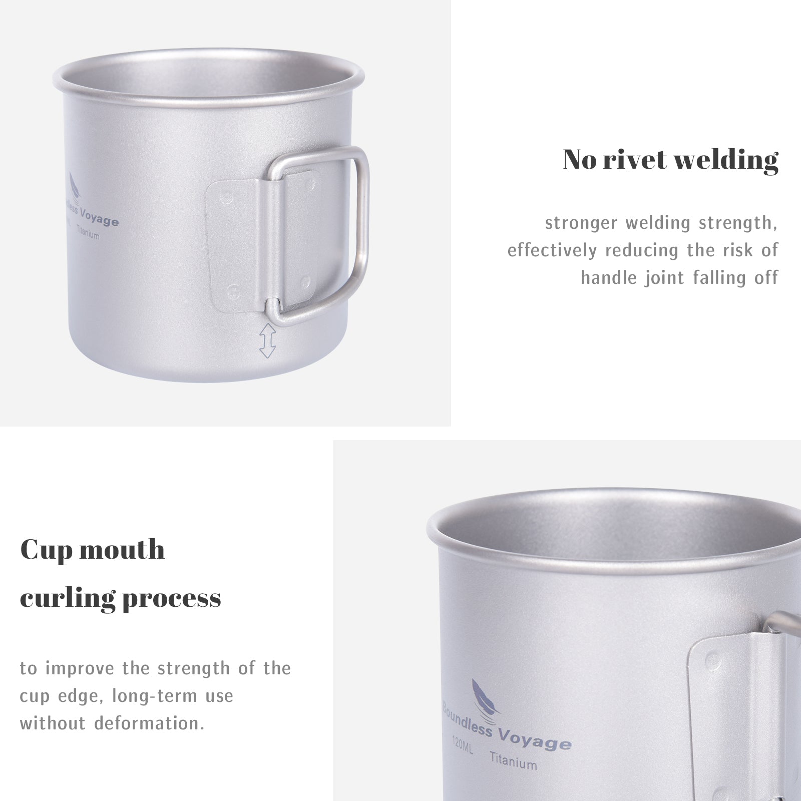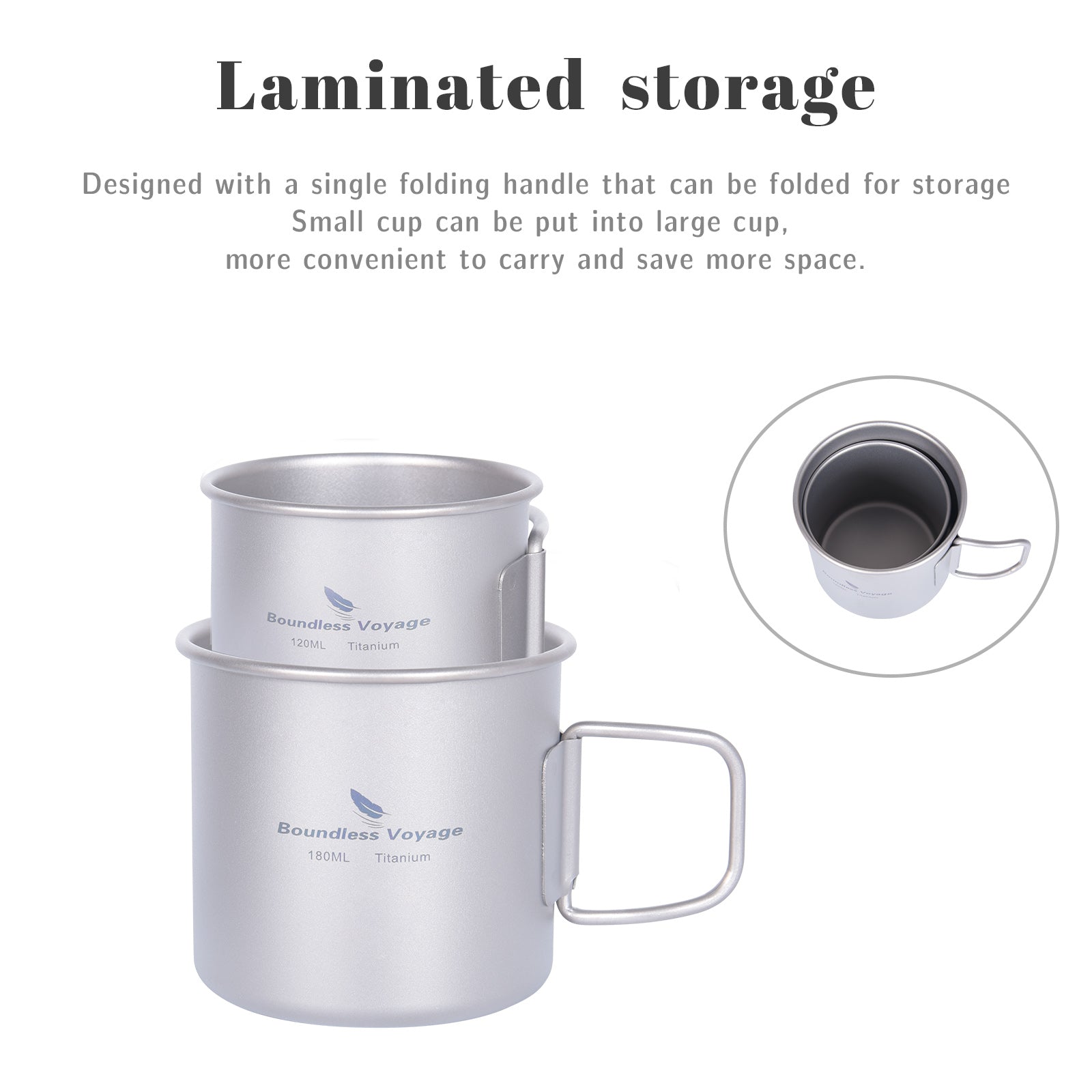 Boundless Voyage Titanium ultra lightweight 120ml and 180ml tea cup wine mug for outdoor camping coffee beer cup without lid