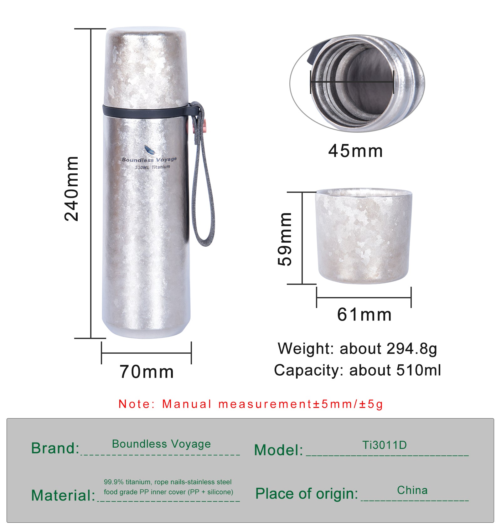 Boundless voyage titanium Vacuum-Insulated Beverage Bottle Large Capacity 510ml Outdoor Portable Vacuum Flask water bottles Hiking water bottle
